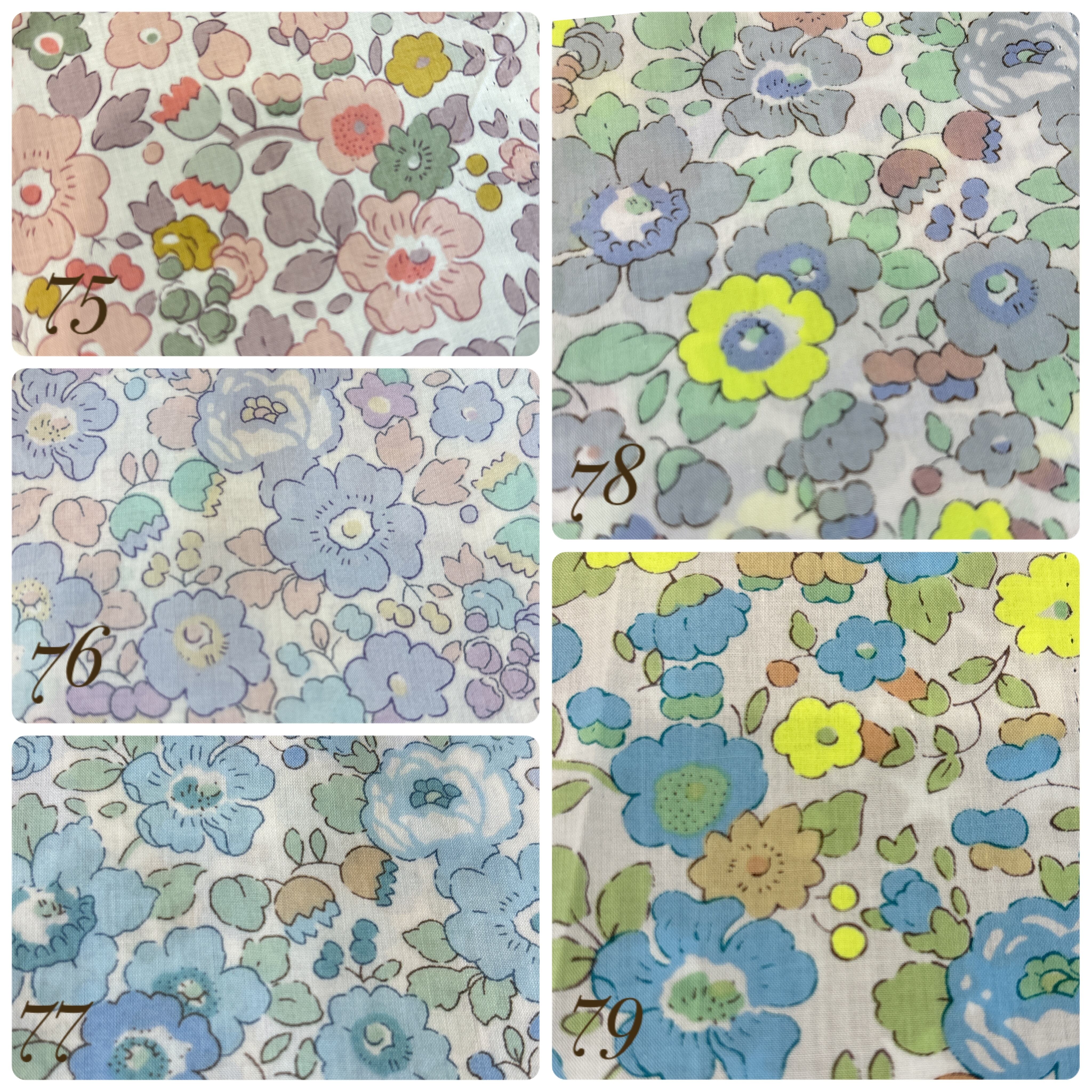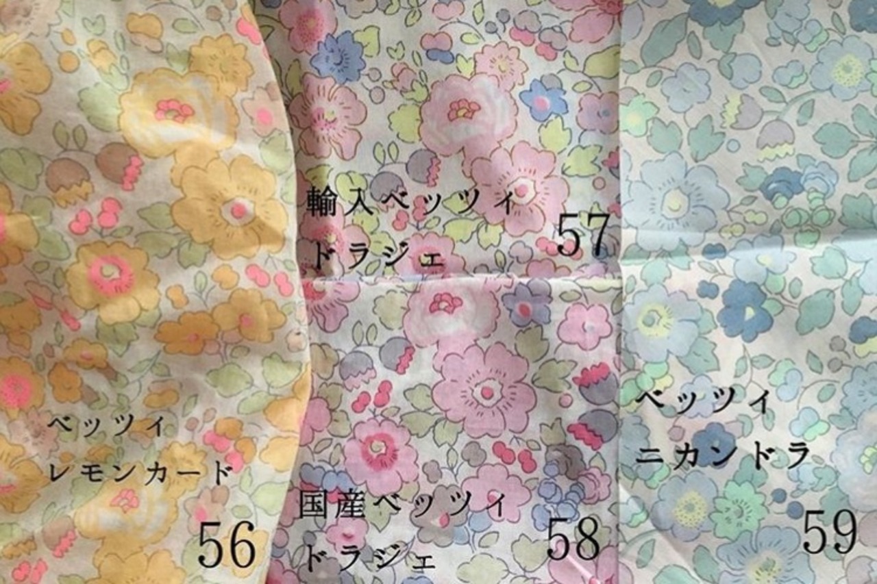 お好みのリバティを是非使って頂きたい気持ちから、ベッツィなど、一部リバティは、柄の箇所を選択して頂けます。(写真1番最後)